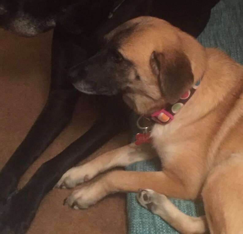 For Zelda, this family is forever. "I never could take imagined that the whole time I was searching for Zelda, she was searching for me, also," Krueger added. "Zelda is officially my dog. But let'due south be honest, information technology's non similar I had a choice. She is very persistent."